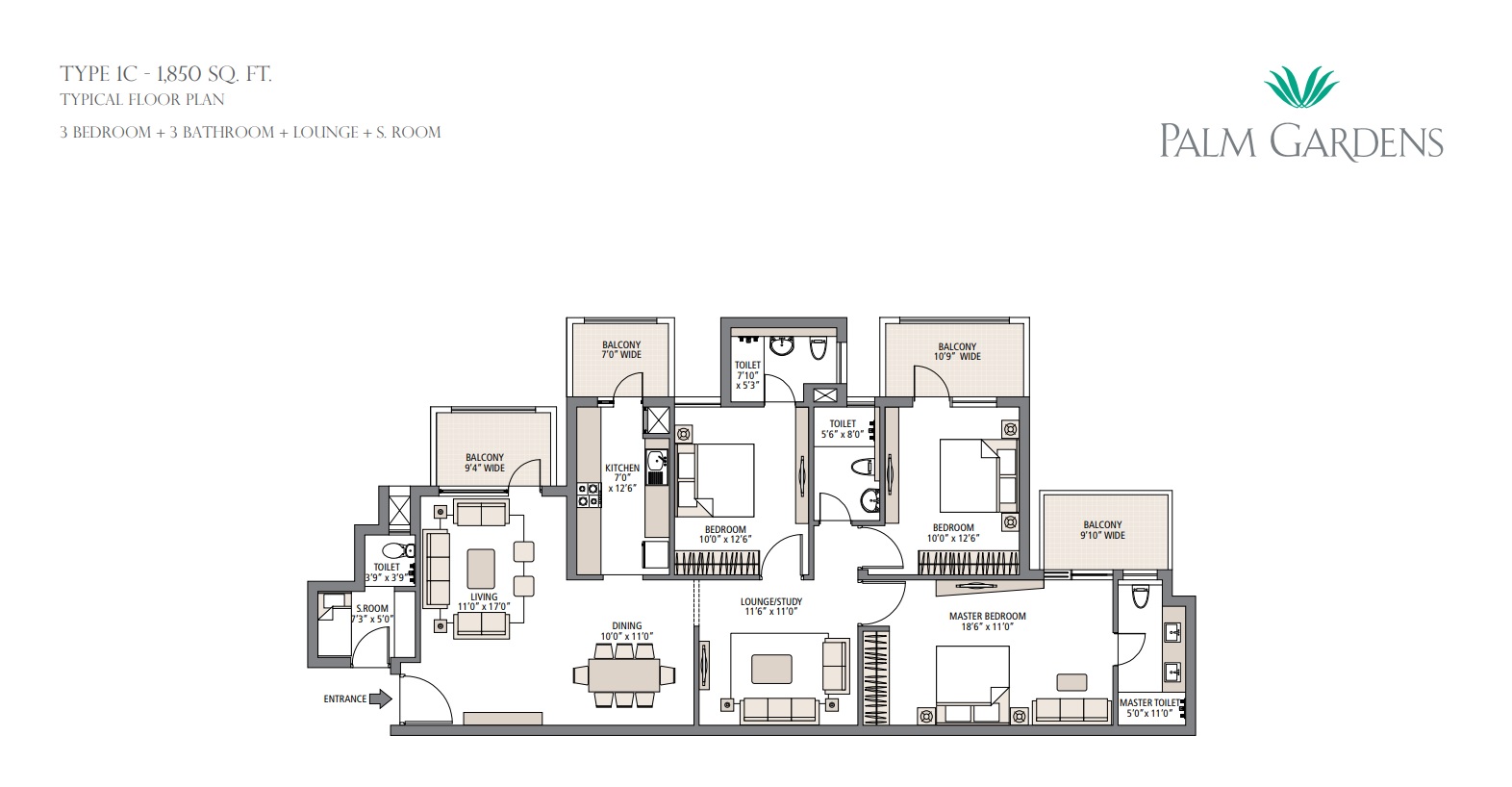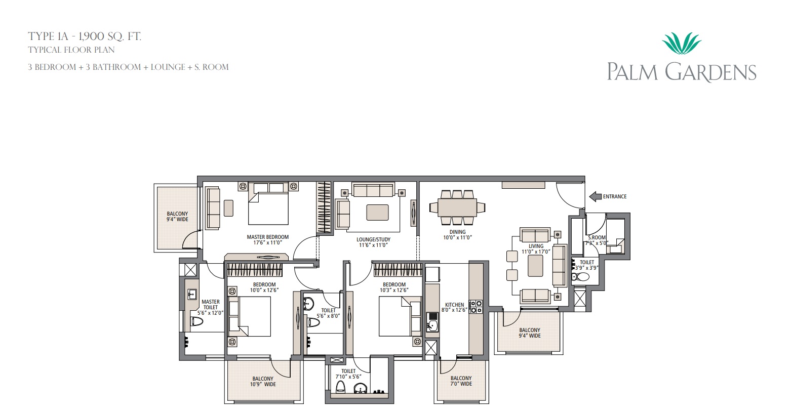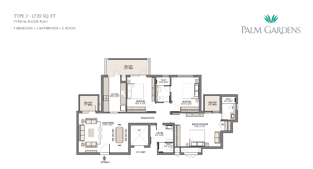 - 3 BHK Units Ranging from 1,720 to 1,900 Sq.Ft.