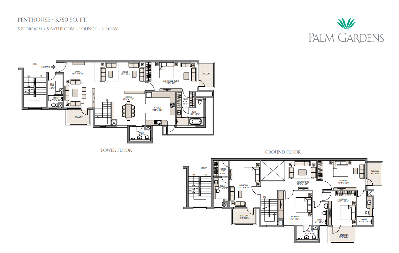 - 5 BHK Duplex on Ground Floor and Penthouses.